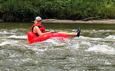 Enjoy an active whitewater tubing float on the French Broad River (Section 7) with a mix of Class 1+ rapids and calmer stretches. This 3-mile trip averages about 1.5 hours on the water and is best for tubers who want more adventure.