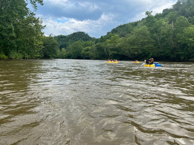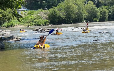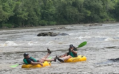 The owners, Jim and Lindsay, consistently earn praise for being incredibly welcoming, knowledgeable, and going above and beyond to ensure everyone has a safe, fun experience. Multiple reviewers mention their thorough safety briefings, helpful communication (even calling to check water conditions for families with kids), and quick problem-solving when issues arise. Their adorable dogs, Willie and Waylon, add an extra touch of charm and often paddle alongside groups. The operation feels personal and family-oriented, with guests repeatedly saying they were made to feel like family. The 5-mile tubing trip on the French Broad River strikes a perfect balance between excitement and relaxation, with some rapids mixed into a scenic float. Reviewers appreciate the quality equipment, complimentary photos and videos, and how smoothly everything runs from start to finish. Groups of all sizes, from couples to 22 people, report having a blast, and families with young children feel especially well taken care of. Located near Marshall, NC (about an hour from Pigeon Forge and close to Asheville), this outfit handles both last-minute drop-ins and reservations, though calling ahead is recommended.