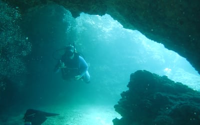 Explore the island’s west side on a three-tank charter featuring a wreck, a deep reef or lava tubes, and a shallow lava tube reef. Your guide chooses the best sites for the day, with access to uncrowded spots on this side of the island.
