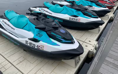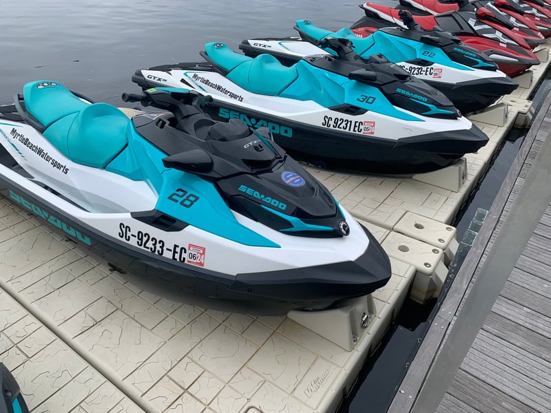 Get on the water with a 30-minute jet ski rental in Myrtle Beach. Ride solo or share a ski—each unit holds up to 3 riders, max 400 lbs.