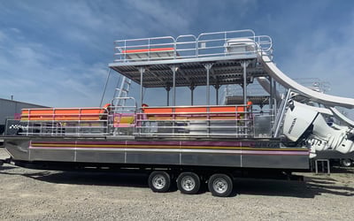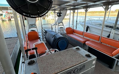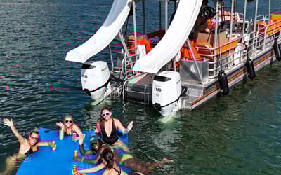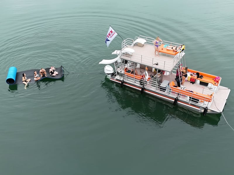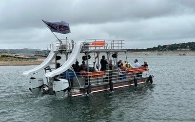 Explore Lake Travis on a 30-foot double-decker party barge with a professional captain. Bring up to 22 guests to relax, slide into the water, and enjoy a powerful Bluetooth sound system.