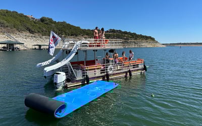 Celebrate on Lake Travis aboard a spacious party barge with a captain and fun water toys.
