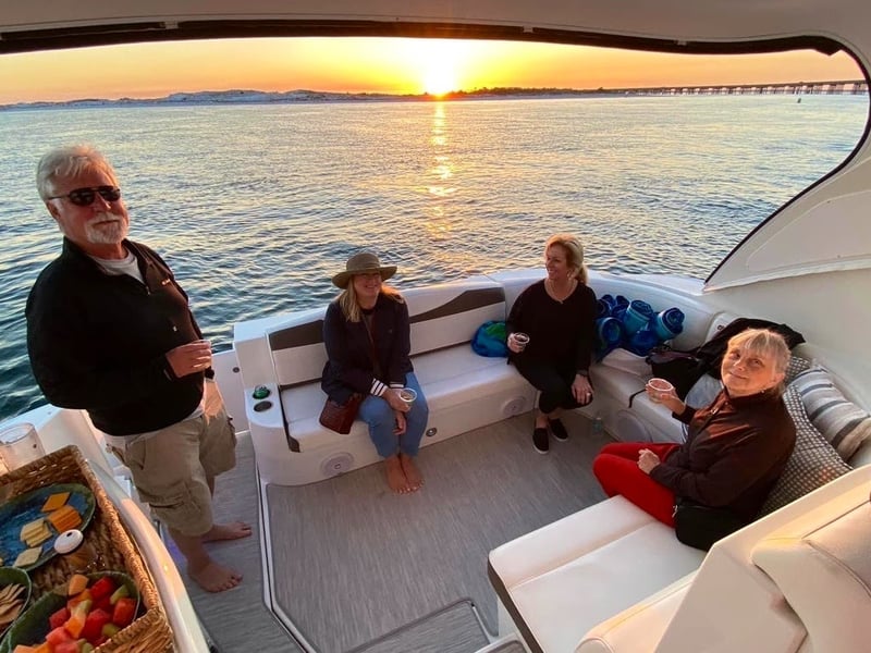 Savor golden-hour views aboard the Miss B Haven yacht in Destin. Cruise calm waters, watch for dolphins, and unwind with friends or family.