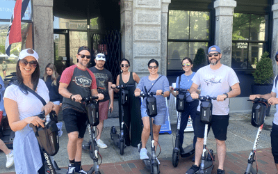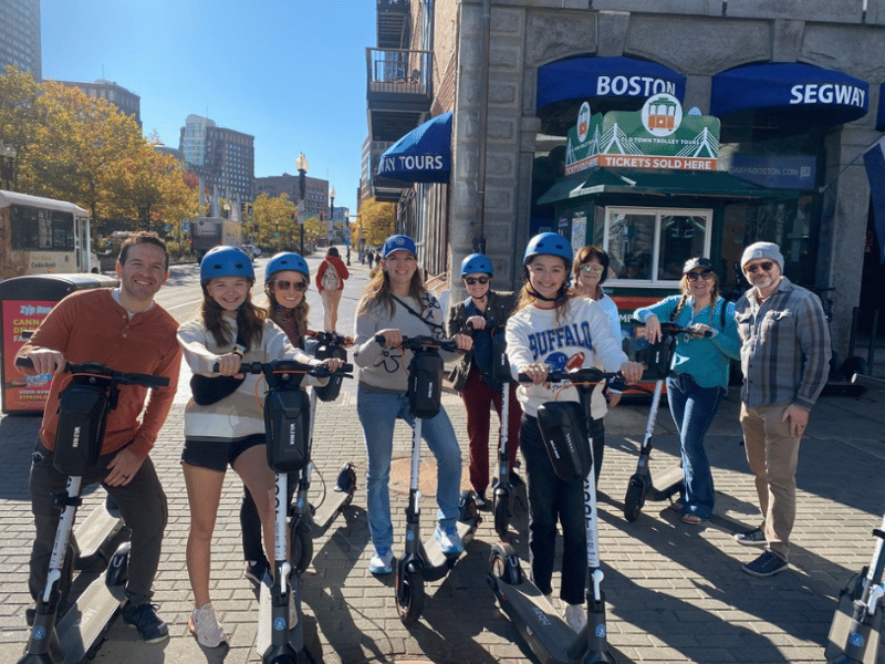 Glide on electric scooters through historic Boston and innovative Cambridge with lunch and photos included