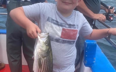 Head out for a classic striped bass trip with an extra hour on the water. Enjoy four hours of fishing time for all ages.