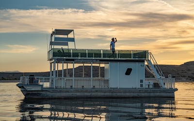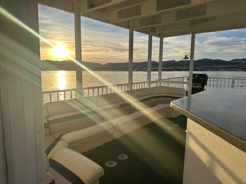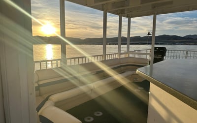 Enjoy a spacious 44' patio pontoon designed for easy day use with houseboat comforts. Cruise with up to 12 passengers and enjoy a BBQ, restroom, and slide.