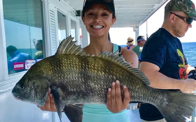 Spend 5.5 hours fishing offshore aboard the 70-foot Captain Hook, featuring shaded seating, an enclosed cabin and an upper sun deck. Target a variety of coastal species with guidance from an experienced crew.