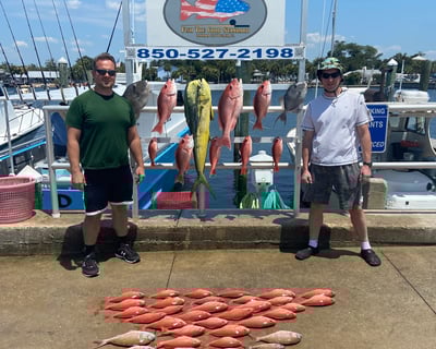 Captain Jason and deckhand Colby have built something special here. Repeat customers spanning six years speak to their consistency, and the reviews reveal why: Jason knows exactly where to find fish, while Colby earns constant praise for his tireless work ethic and teaching abilities. Multiple families mention catching their limit in red snapper, plus grouper, wahoo, and even the occasional bull shark for extra excitement. The boat stays clean and well-maintained, and both crew members clearly love what they do. What really stands out is how attentive this team is to each guest. First-timers feel completely at ease, kids get patient instruction and have memorable experiences, and everyone seems to appreciate Colby's ability to handle multiple lines at once while keeping spirits high. Jason's communication before trips helps set proper expectations, and his knowledge of the local waters means less time wasted on out-of-season catches. Whether it's your first deep sea adventure or you're a seasoned angler, this crew delivers the kind of fishing trip that becomes a vacation highlight.