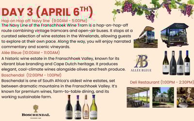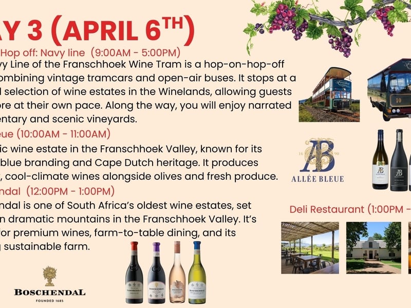 Taste iconic estates and ride the Wine Tram, plus a safari day, with seamless chauffeured service