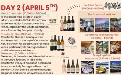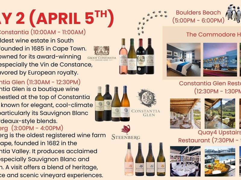 All travelers must be 18+ to join tastings. Closed-toed shoes are required for winery production tours. South Africa uses Type M plugs; bring a suitable adapter.