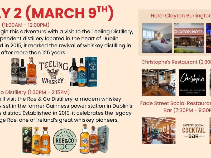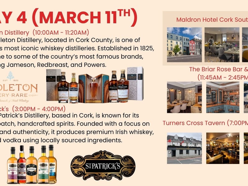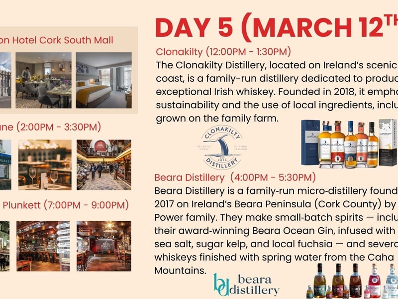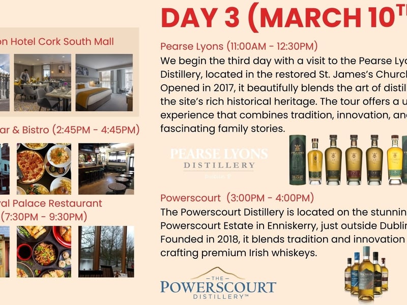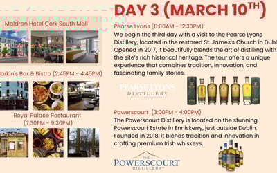 Explore Ireland’s whiskey heritage on an 8-day luxury journey between Dublin and Cork. Visit storied distilleries and modern innovators with premium tastings, a cocktail class, and speakeasy tours, all linked by private chauffeur service.