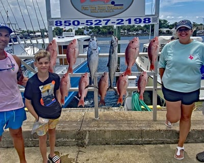 Captain Jason and deckhand Colby have built something special here. Repeat customers spanning six years speak to their consistency, and the reviews reveal why: Jason knows exactly where to find fish, while Colby earns constant praise for his tireless work ethic and teaching abilities. Multiple families mention catching their limit in red snapper, plus grouper, wahoo, and even the occasional bull shark for extra excitement. The boat stays clean and well-maintained, and both crew members clearly love what they do. What really stands out is how attentive this team is to each guest. First-timers feel completely at ease, kids get patient instruction and have memorable experiences, and everyone seems to appreciate Colby's ability to handle multiple lines at once while keeping spirits high. Jason's communication before trips helps set proper expectations, and his knowledge of the local waters means less time wasted on out-of-season catches. Whether it's your first deep sea adventure or you're a seasoned angler, this crew delivers the kind of fishing trip that becomes a vacation highlight.