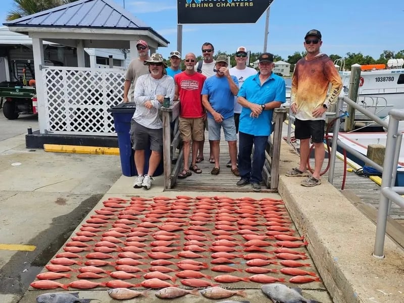 Captain Chris and his crew, particularly deckhand Landon, consistently deliver excellent fishing experiences out of Panama City Beach. Reviewers rave about Landon's tireless work ethic — he's constantly baiting lines, gaffing fish, untangling rigs, and keeping everyone engaged throughout the trip. Multiple guests mention catching impressive hauls including red snapper, mahi mahi, king mackerel, and various other species, with one group bringing in 115 pounds of fish in a single outing. The captain clearly knows the local waters and where to find the fish, even managing to keep guests successful in rougher conditions with 3-4 foot waves. First-timers feel particularly well taken care of, with the crew showing patience and attentiveness to those new to offshore fishing. The boat stays clean, and the overall professionalism shines through from start to finish. Return customers keep coming back, which speaks volumes about the consistent quality of these trips.