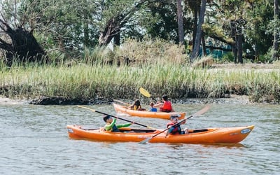 Travel by private boat to secluded Page Island for a 5-hour teen adventure. Kayak tidal creeks, fish from the docks, and take on a guided challenge course.