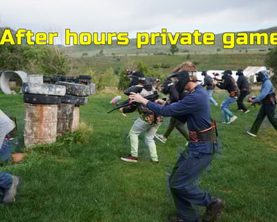 Join a scheduled after-hours paintball game with walk-on players and your party kept together