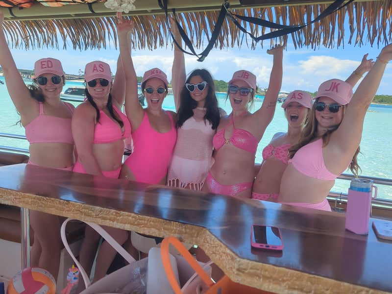 Celebrate your bride tribe on a private 4-hour afternoon cruise aboard the Pink Flamingo tiki boat in Pensacola. Bring your own drinks, enjoy bar seating and Bluetooth tunes, and relax with space for up to 18 guests.
