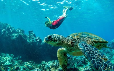 Spend your afternoon exploring West Maui's vibrant reefs on a 3.5-hour cruise. Swim alongside Hawaiian Green Sea Turtles, then refuel with onboard appetizers and an open bar.