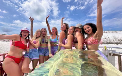 Spend a laid-back afternoon cruising aboard a tiki boat to Crab Island. Swim in shallow emerald waters, lounge on floats, and enjoy a customizable private charter with a dedicated captain and mate.