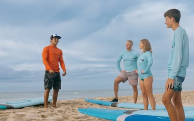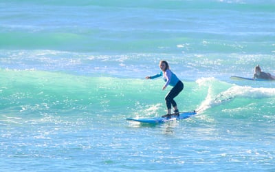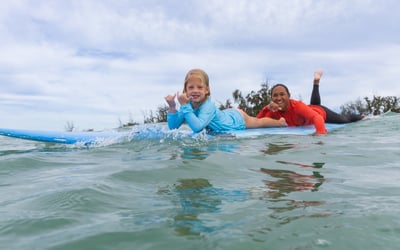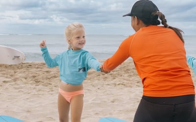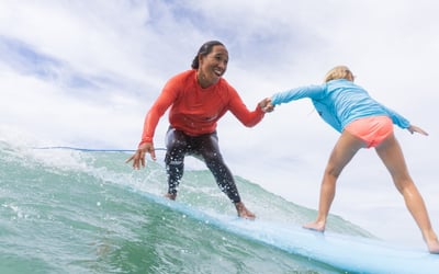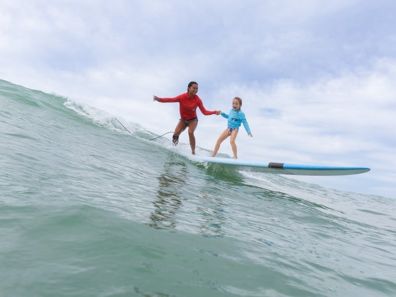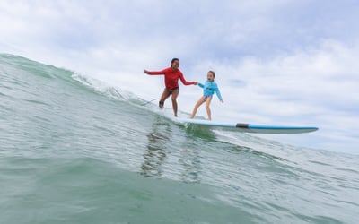 Lessons are suitable for ages 3 and older; children under 100 lbs may surf tandem with the instructor.