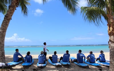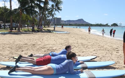 Learn to ride Hawaiian waves in a supportive, uncrowded setting at Ala Moana Beach Park, just minutes from Waikiki. Experienced instructors tailor each surf lesson to your age and ability.