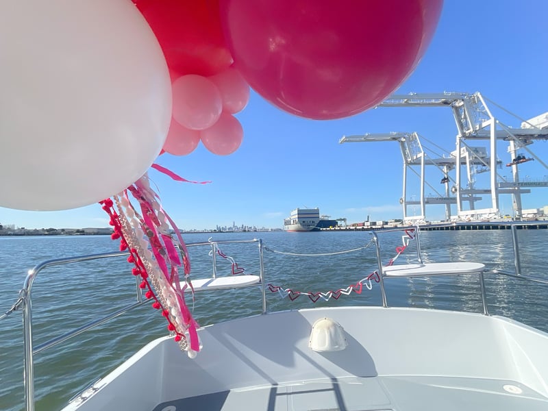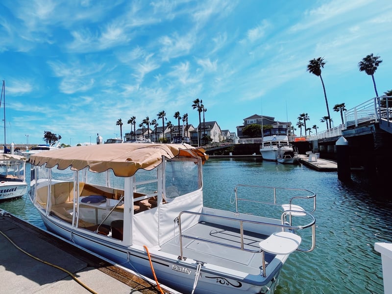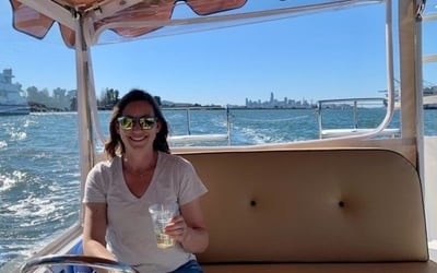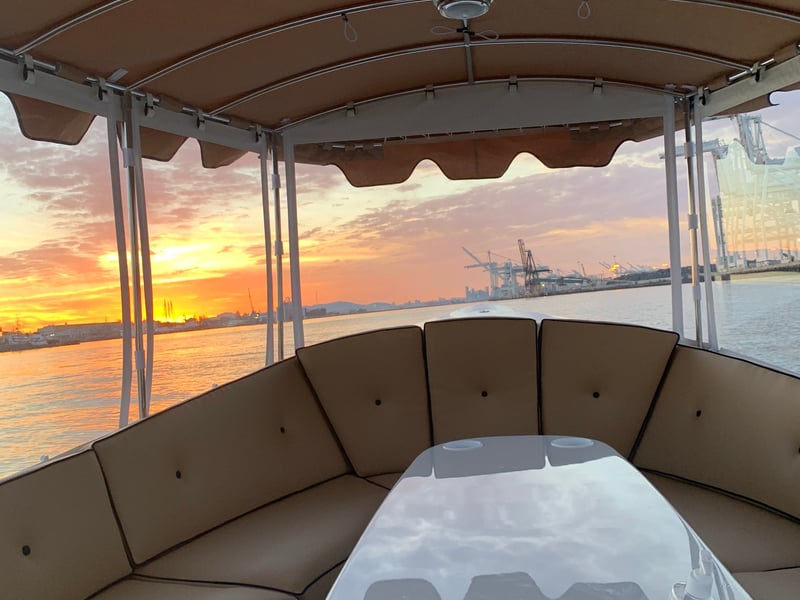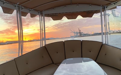 Glide through the tranquil waters of the Oakland Estuary aboard an emission-free Duffy Suncruiser. Enjoy relaxed, comfortable cruising with skyline views and easy handling.