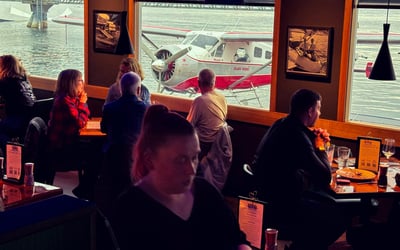 Indulge in a multi-course tasting of fresh Alaskan seafood while overlooking Ketchikan's bustling float plane docks. Explore bush aviation history through rare photographs and stories as you dine in a waterfront lounge.