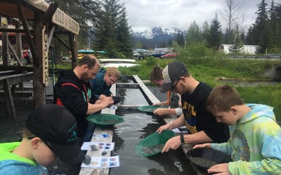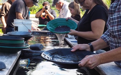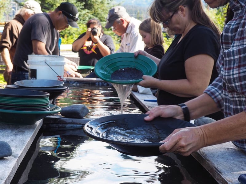 Learn to pan for gold under covered troughs and keep the Alaskan flakes you find