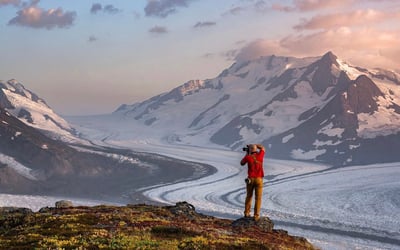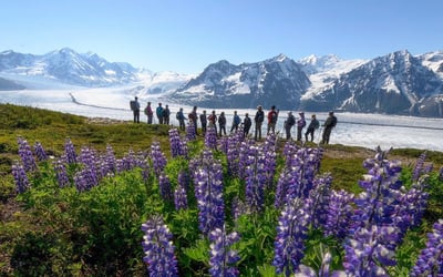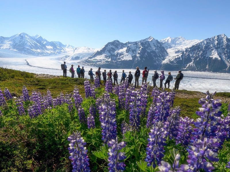 Fly to remote alpine terrain for a guided hike with sweeping glacier views and a relaxed, small-group pace