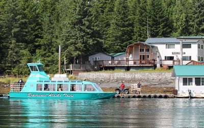 Experience wildlife cruising and savor a hearty seafood boil at a secluded Alaskan lodge.