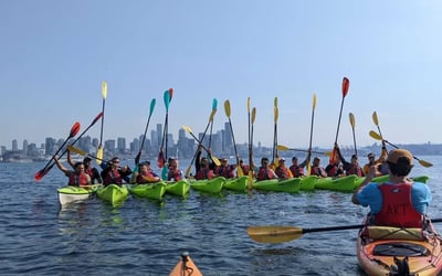 The guides here really make the experience. Austin, Ethan, Gill, Nick, and Miles all get enthusiastic shoutouts for being knowledgeable, friendly, and genuinely passionate about Seattle. The sunset kayak tour on Elliott Bay consistently wins people over with stunning views of Mt. Rainier, the downtown skyline, and occasional wildlife sightings like seals, herons, and sea lions. Even when weather doesn't cooperate, guides keep spirits high and share interesting local history throughout the paddle. Beyond guided tours, the rental operation runs smoothly whether you're grabbing kayaks, paddleboards, or bikes to explore the Alki coastline on your own. Staff members like Noah earn praise for staying calm and helpful even during hectic summer rushes. First-timers feel especially well-supported with patient instruction before heading out. The rescue and recovery class comes highly recommended if you're planning more ambitious trips. The vibe is consistently described as chill and welcoming, with friendly staff who make the whole experience feel effortless from check-in to return.
