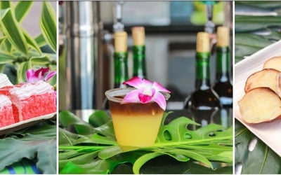 Lei, drinks, buffet