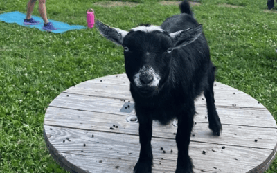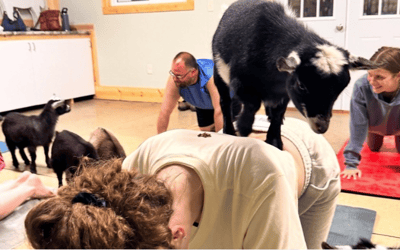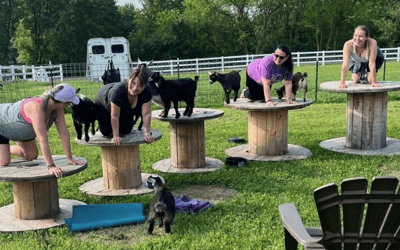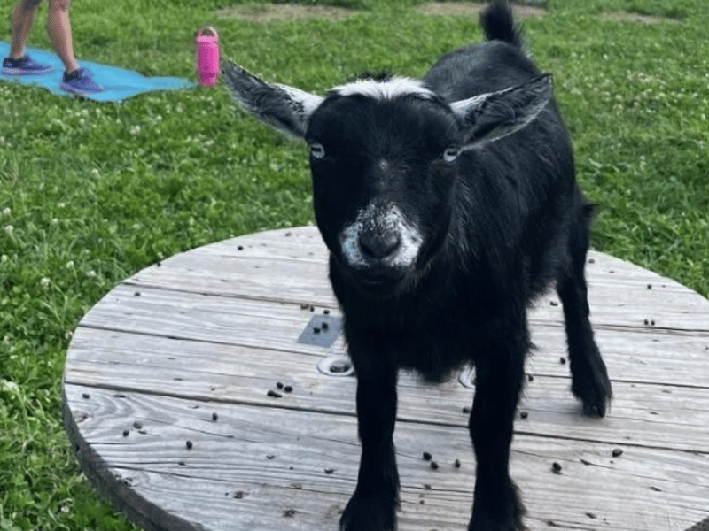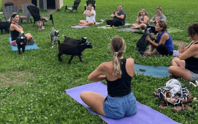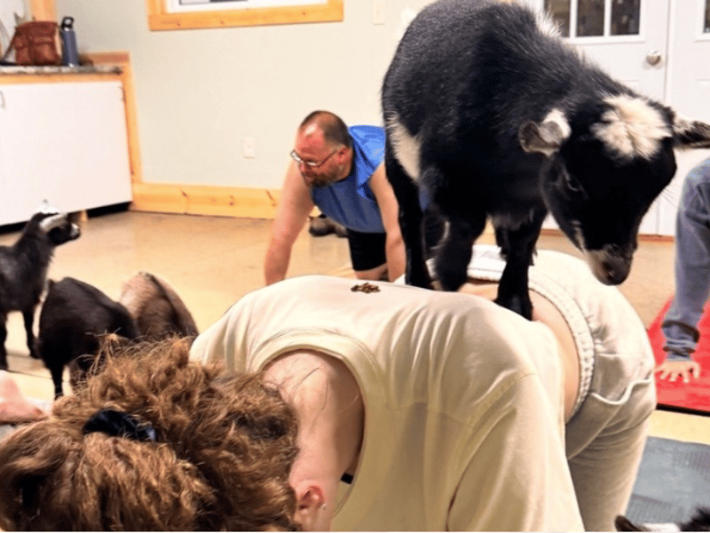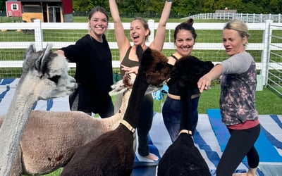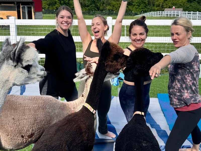 Stretch alongside friendly alpacas and playful goats during a relaxing farm yoga session.