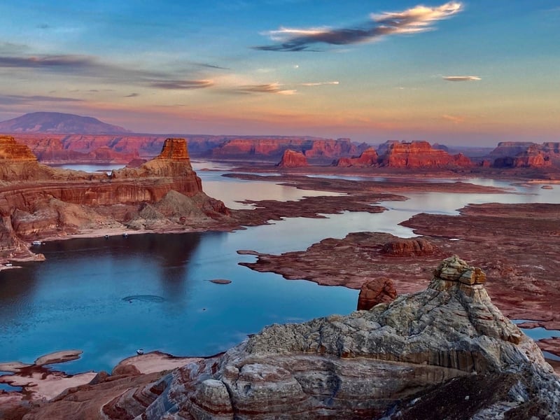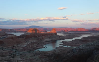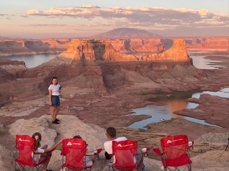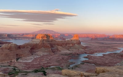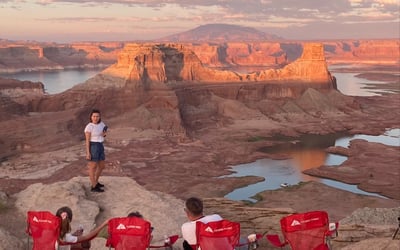 Experience a private sunset journey to Alstrom Point, an iconic overlook of Lake Powell. Travel off-road in enclosed, air-conditioned vehicles as evening colors light the sky.