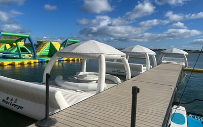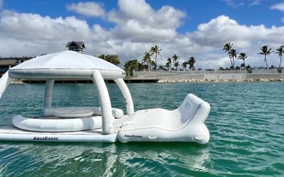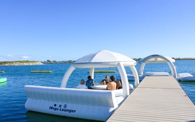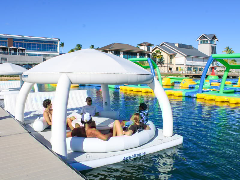 Relax on a floating cabana with room for groups and panoramic lagoon views
