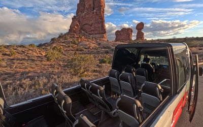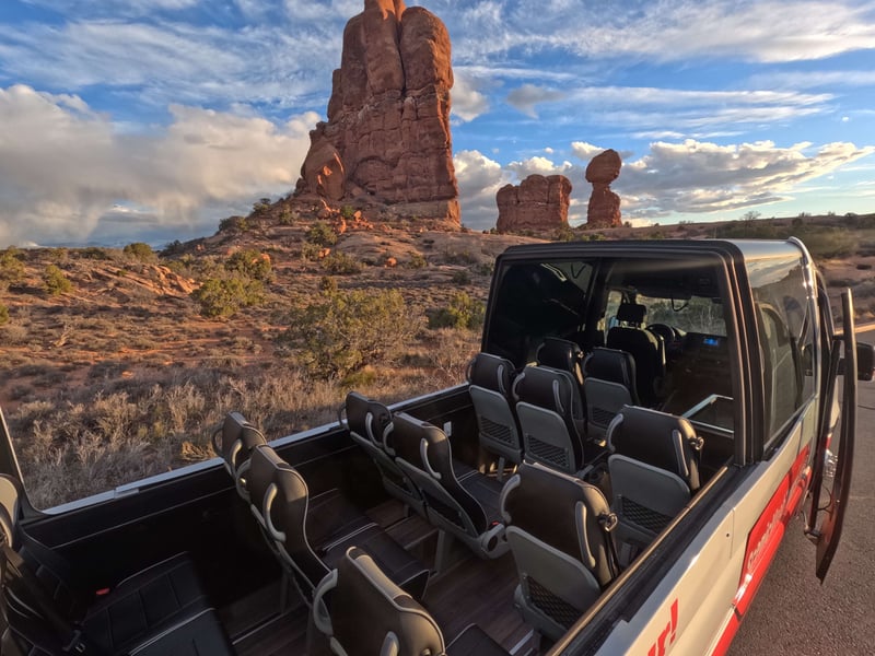 See Arches' iconic formations from a 360° open-air panoramic van in just four hours