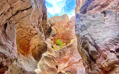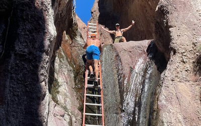 Hike through desert canyons to Arizona Hot Springs with a professional guide. Climb a 100°F geothermal waterfall, soak in mineral pools, and cool off in the Colorado River.