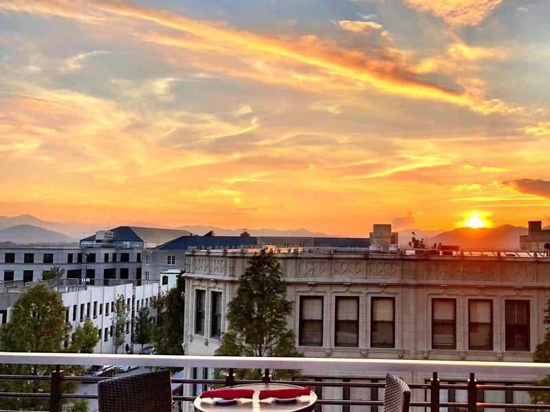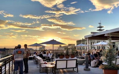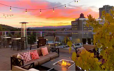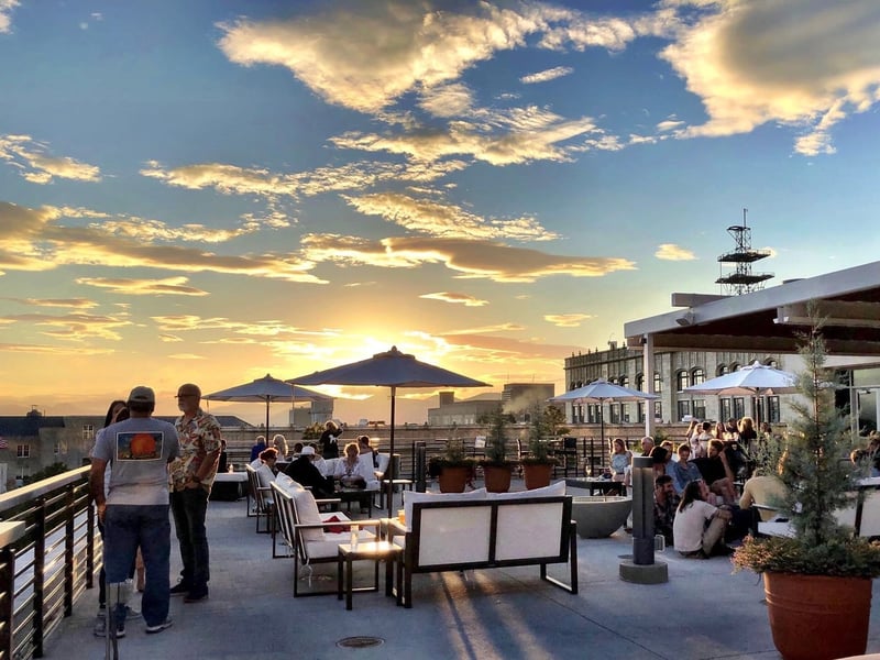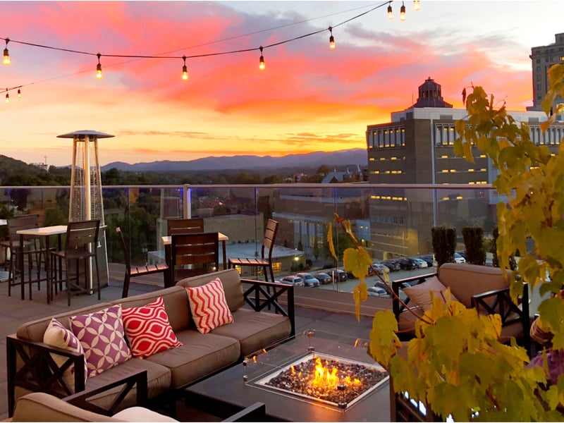 Sip cocktails and watch Blue Ridge Mountain sunsets from three rooftop bars with reserved seating