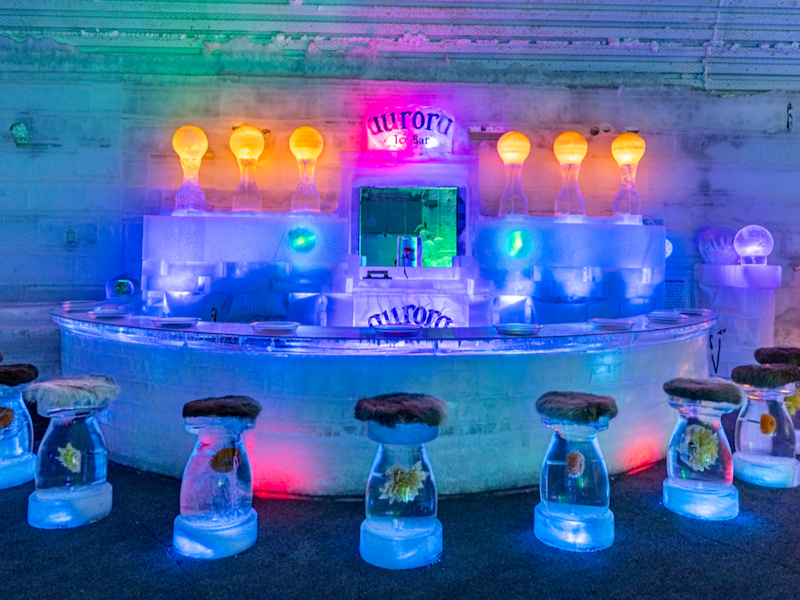 The Aurora Ice Museum stays around 25°F (-7°C) inside.