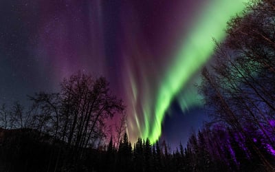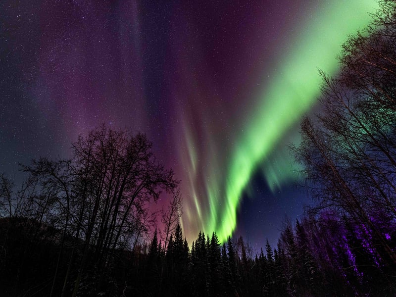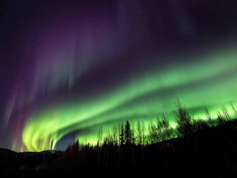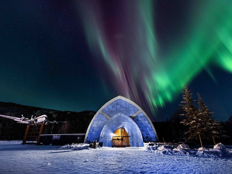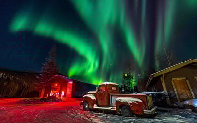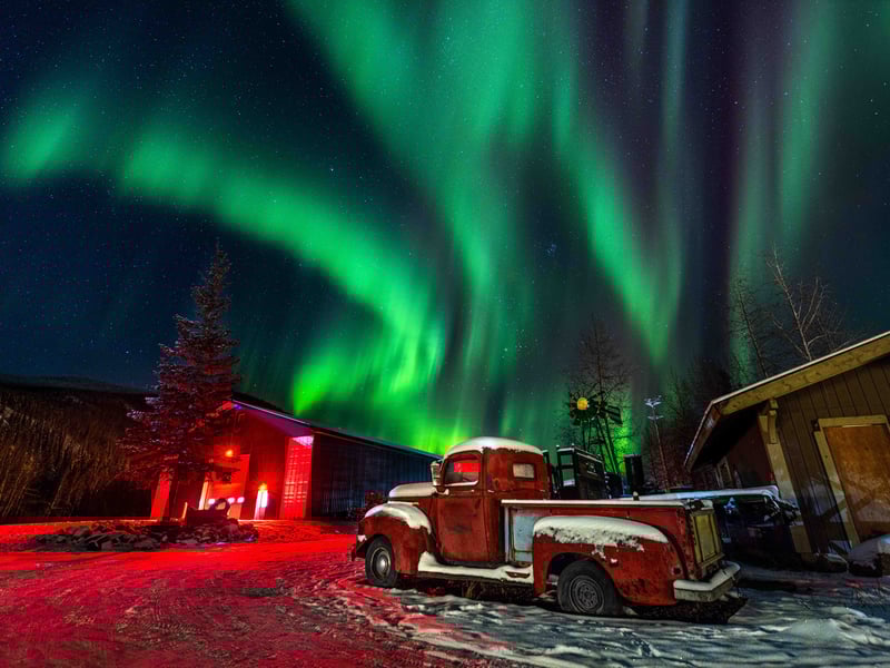 Learn night-sky camera skills, then ride to Charlie Dome for aurora viewing from heated yurts