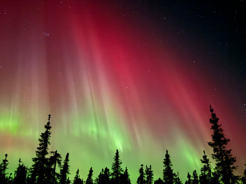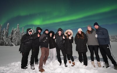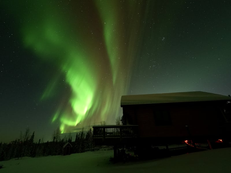 Settle into a cozy Alaskan-style cabin on a hilltop near Murphy Dome to watch the Northern Lights. Enjoy hot drinks, snacks, games, and free portrait photos, with transfers typically departing 9:00–9:30 p.m.