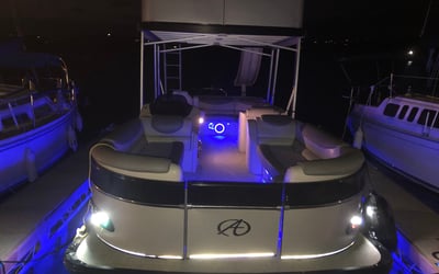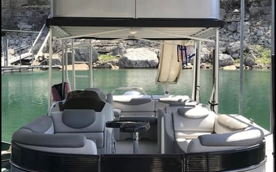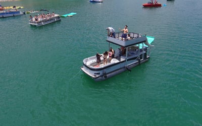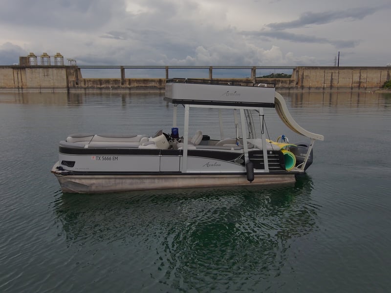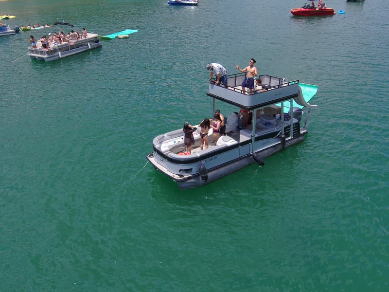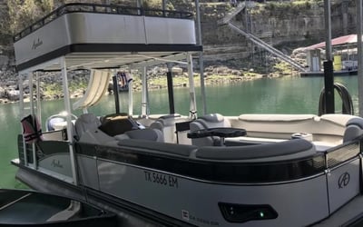 Cruise Lake Travis on a spacious double-decker pontoon complete with captain, slide, and water toys.