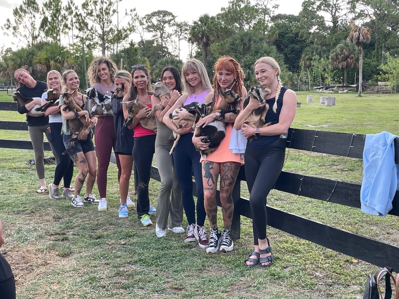This husband-and-wife operation has created something genuinely special in Loxahatchee. The couple runs a serene, well-maintained farm where visitors consistently praise the warmth and knowledge the owners bring to every interaction. Guests highlight how unhurried and personal each visit feels, with the husband leading tours and sharing stories about the animals while his wife offers homemade snacks. The goat yoga sessions draw the most attention, starting with a farm tour where you'll meet and feed various animals before carrying baby goats to a covered yoga area. The instructor (Joy gets mentioned by name) leads a legitimate workout while staff members scatter kibble to encourage adorable interruptions. Beyond yoga, the Baby Goat & Piglet Socials offer intimate animal encounters that visitors describe as genuinely therapeutic. You'll bottle-feed baby goats, bathe tiny piglets, and cuddle animals in a relaxed setting without feeling rushed. Families with kids, bachelorette parties, and couples have all found it memorable. Just rent the yoga mats for $5 rather than bringing your own, since they'll inevitably get messy. The peaceful property, the owners' obvious passion for their animals, and the thoughtful photo opportunities create an experience that stands out from typical farm visits.