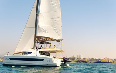 Set sail on a Bali 4.6 and enjoy its open, seamless layout designed for comfort and style. Cruise with professional crew and make the most of spacious indoor and outdoor areas on a memorable half-day on the water.