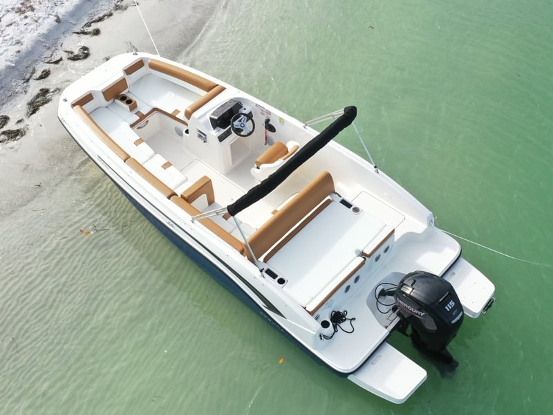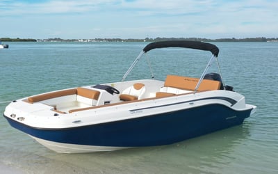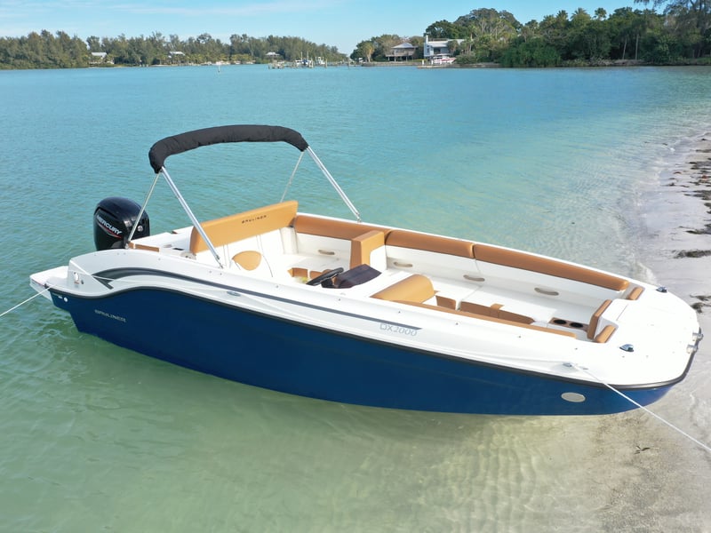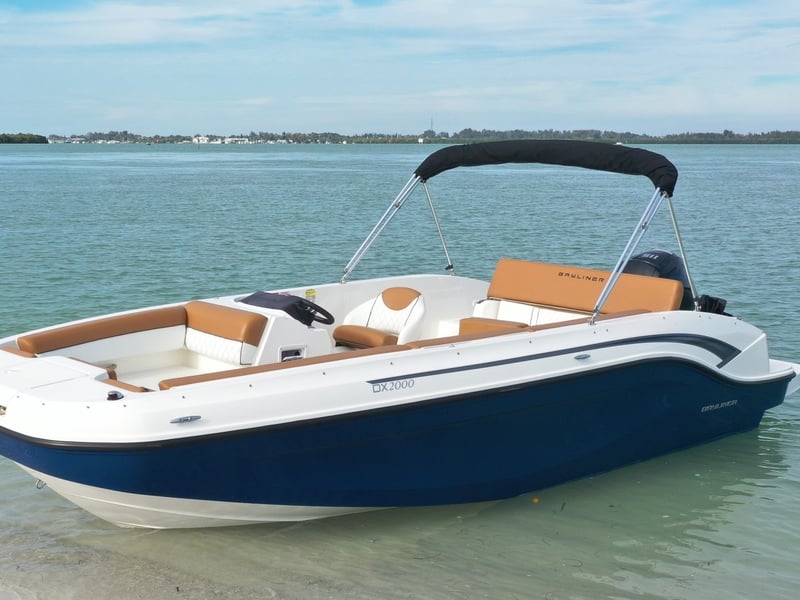 Explore Anna Maria Island by water aboard a 2022 Bayliner DX2000 deck boat. Enjoy roomy seating, modern navigation, and flexible rentals from half-day to multi-day.