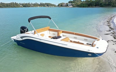 Cruise Anna Maria Island in a roomy deck boat with seating for eight