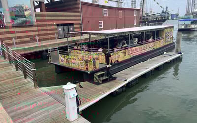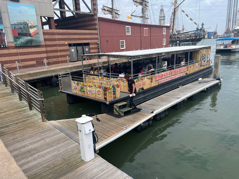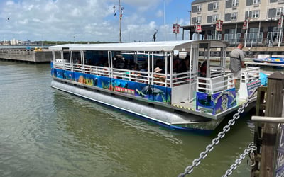 Cruise through Galveston Harbor on an open-air pontoon and search for wild dolphins while learning local history. This 45-minute family-friendly outing is also dog-friendly.