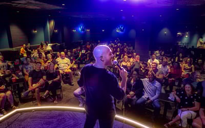 Ride with a guide for BBQ, rooftop views, and a comedy show with preferred entry