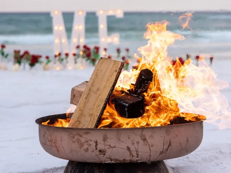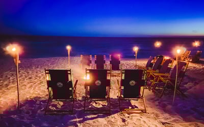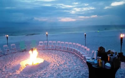 Gather around a cozy beach bonfire for 2.5 hours. Enjoy s’mores, beach games, and a relaxing setup with chairs, tiki torches, and an attendant.