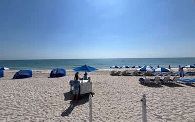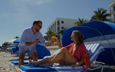 Claim your own private space on the sand with a full-day cabana rental at Costa d' Este. Lounge in comfort with included chairs and umbrella as you soak up the ocean views.
