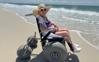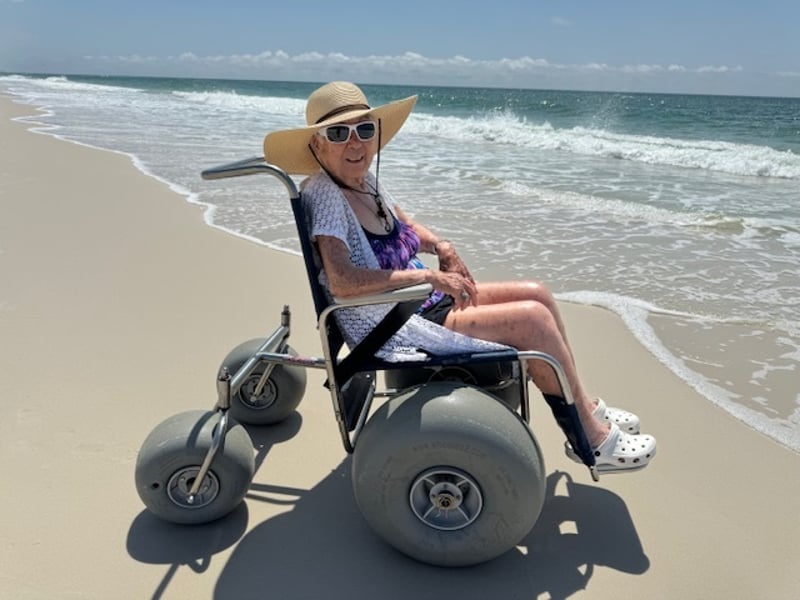 Rent a non-motorized beach wheelchair for 1–7 days. Delivery runs 8–11 AM on your first day, with pickup the morning after your last day.